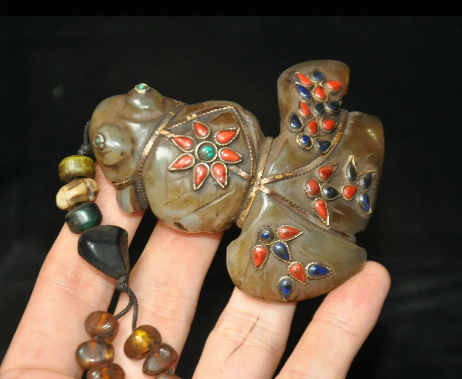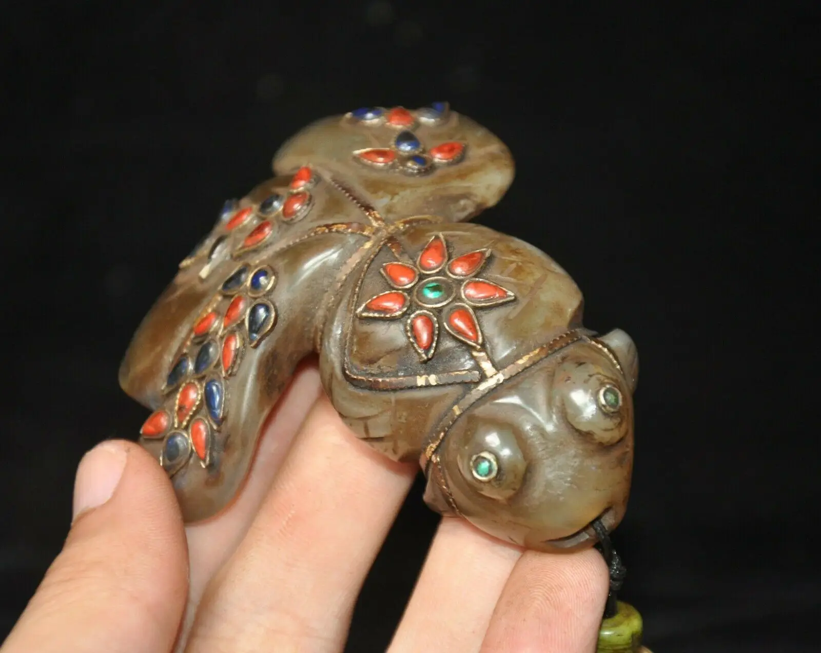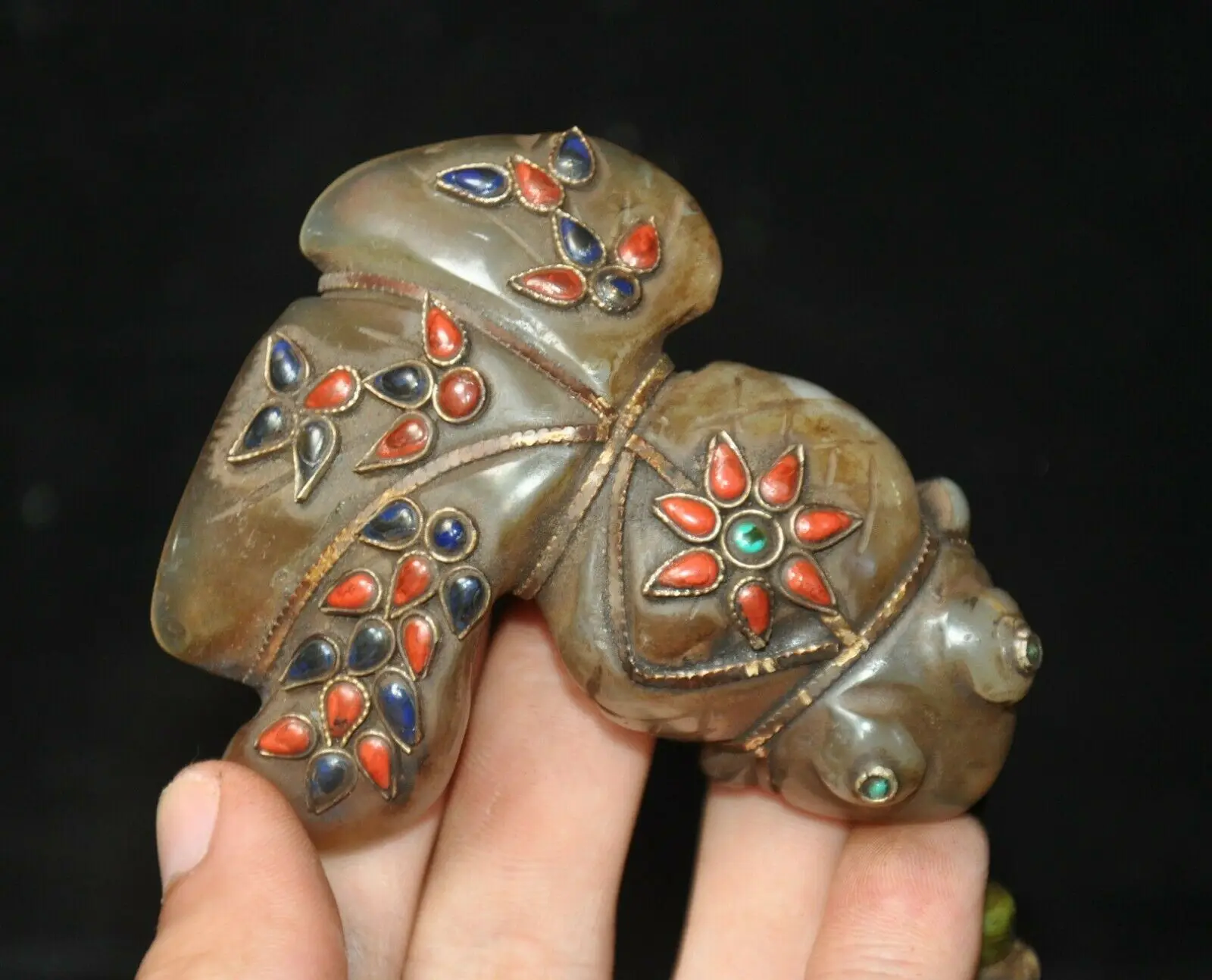 BEST wedding decoration 3" Tibet Agate Jade Stone Filigree inlay Gem fish goldfish animal statue Pendant